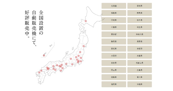 このこだわりのだしが「24時間いつでも購入」できるよう、二反田醤油はだし道楽をスーパー等には出荷せず、専用の自販機を各地に置いて販売しているそうです。自販機は北海道から沖縄まで全国に設置されています。