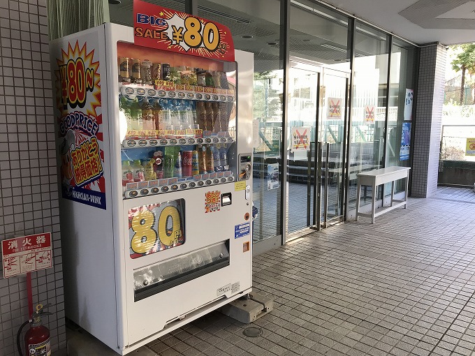 自販機の飲料の「標準価格」は、缶が130円でペットボトルが160円という感じですが、そんな値段を付けている強気の自販機は、JRのホームとか、映画館の中とか、他に購入場所の選択肢がないような場所にしかありません。街角にある自販機はたいてい100円から、あるいはこの4号館の自販機のように80円から商品ラインナップをはじめています。